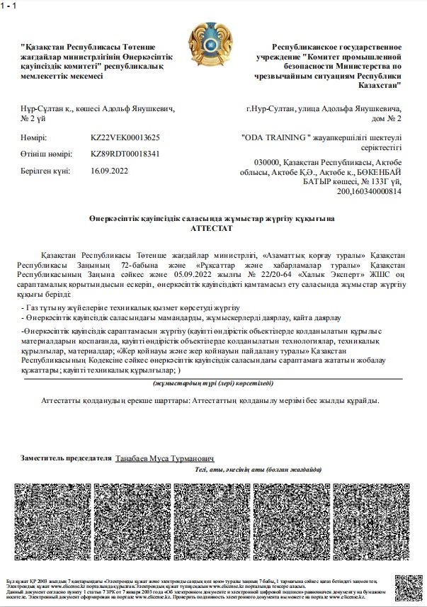 TOO "ODA TRAINING" — лидер в многопрофильных услугах по охране труда, промышленной, пожарной и экологической безопасности. Благодаря высококвалифицированному персоналу и эффективному руководству компания обеспечивает надежное соблюдение стандартов, что способствует безопасности и процветанию клиентов.